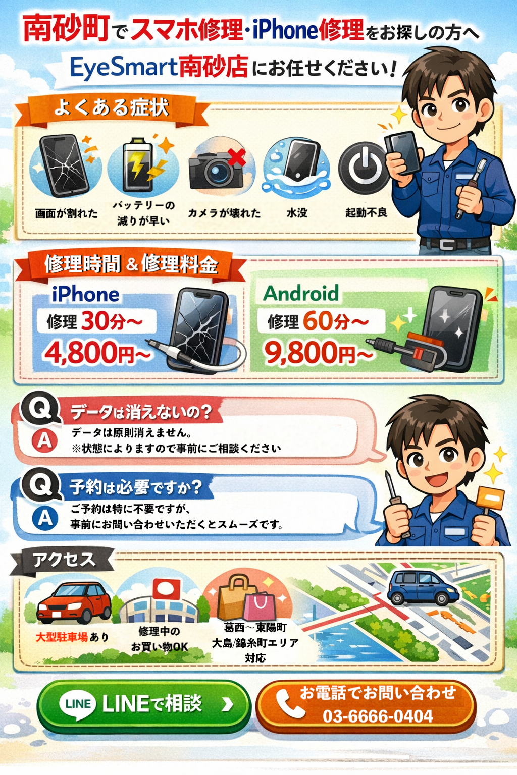 南砂町でスマホ修理・iPhone修理をお探しの方へ。